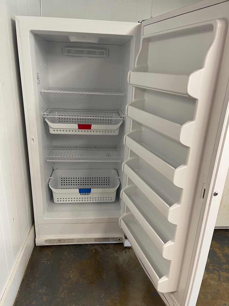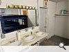 | Appliances | Ice maker, two microwaves, two electric stoves, large upright freezer, two refrigerators, and small selection of pots and pans. |